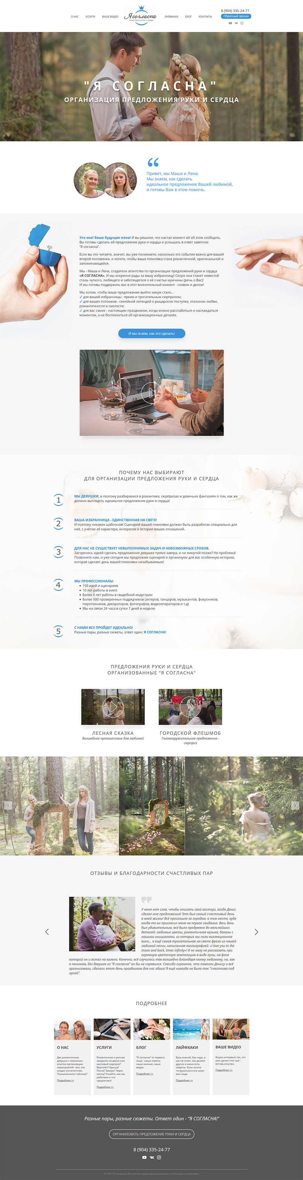 адаптивный сайт сервиса по организации предложения руки и сердца